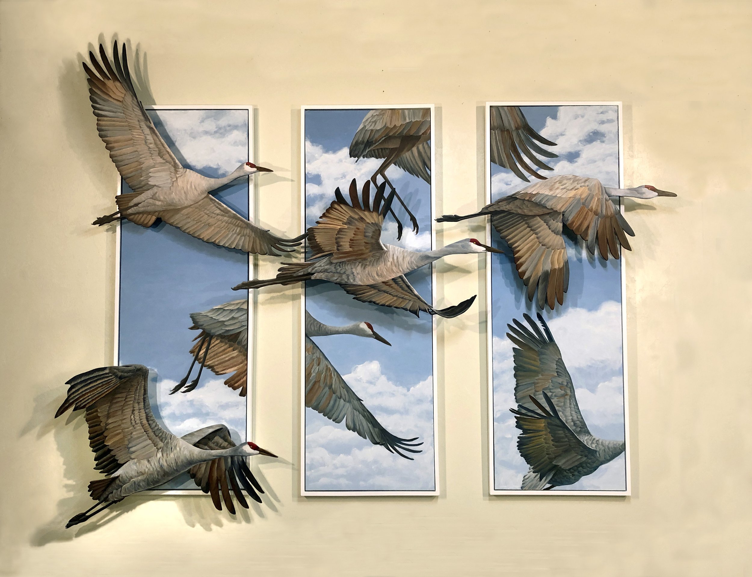 canvas: acrylic on canvas; birds: acrylic on 5-ply birch